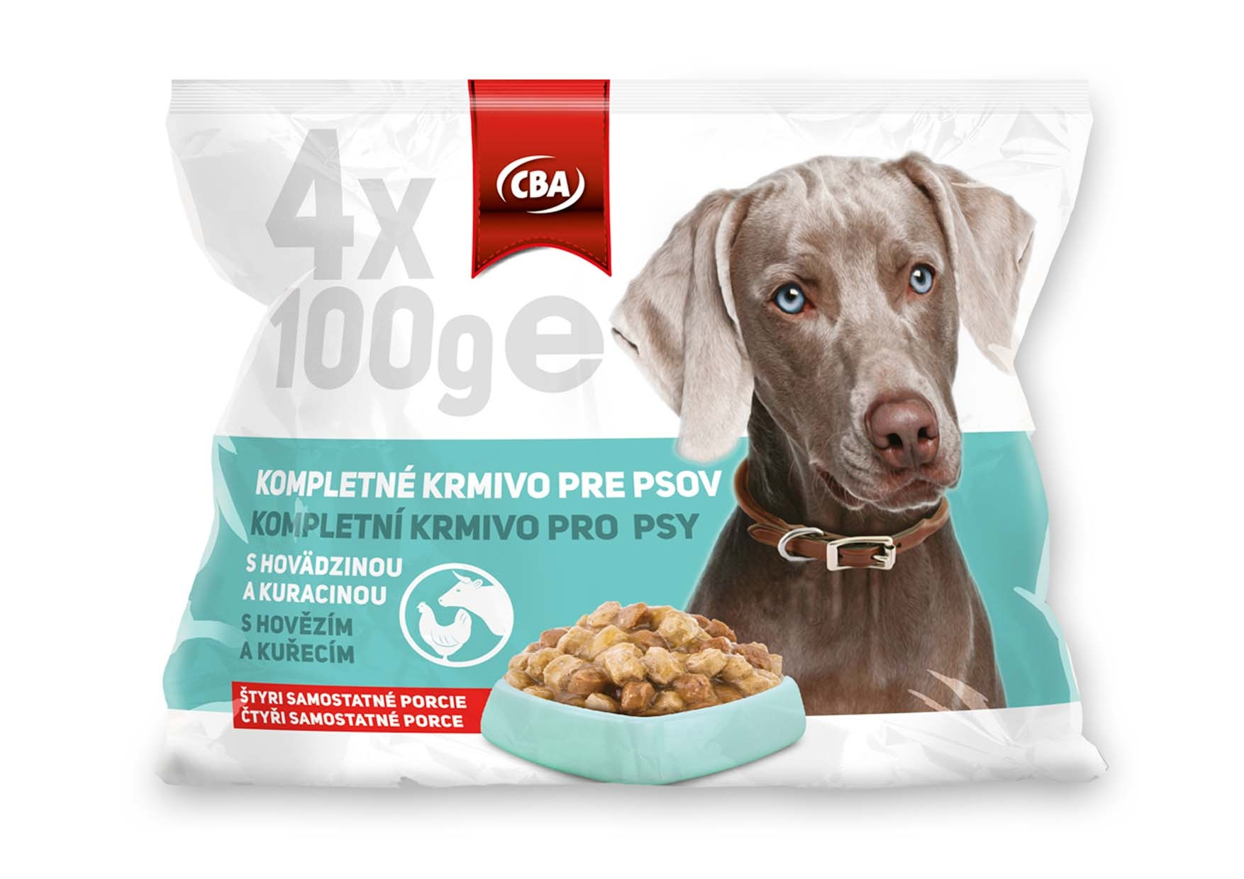 Kompletné krmivo pre psov s hovädzinou a kuracinou (kapsičky) CBA 4x100g